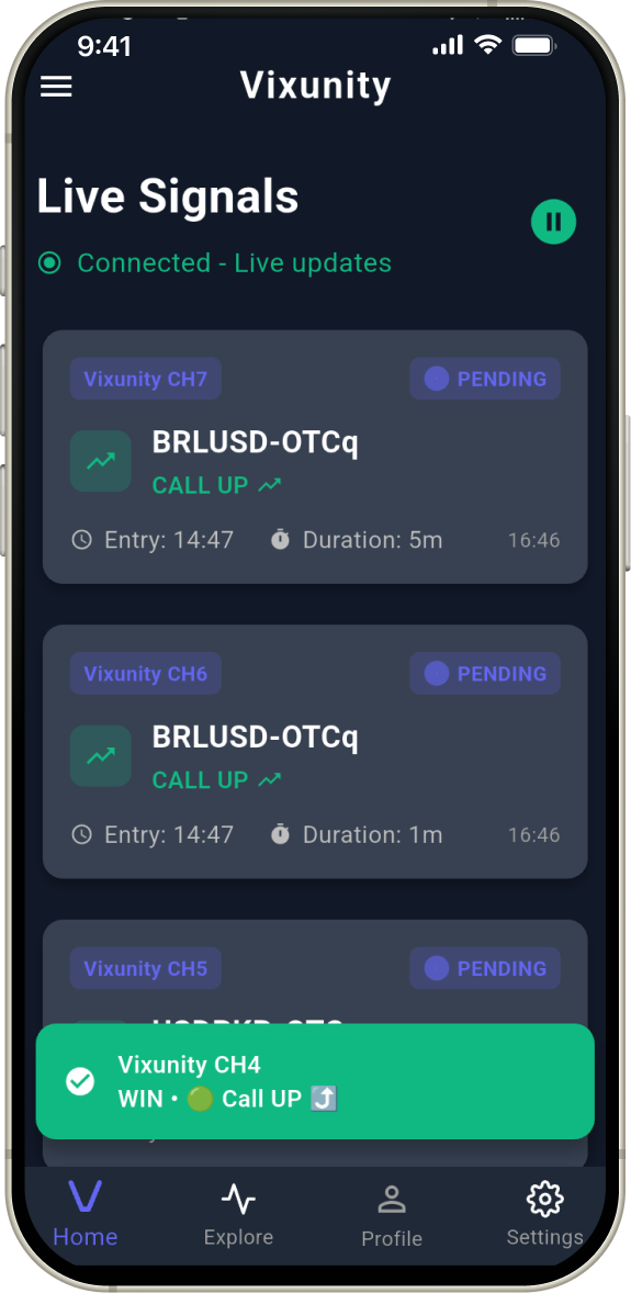"I've been using Vixunity signals for 6 months and my trading profits increased by 300%. The accuracy is incredible and the App notifications are instant. Best investment I've made!"